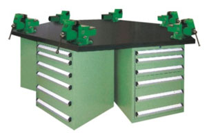 堅固的工作桌框架,可使工作桌承重達 1000kg,臺面經特殊處理,具有防腐、抗沖擊力強等特。