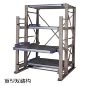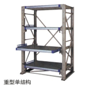 主要用于存放各種模具等物品,頂部可配置手拉葫蘆移動車,便于貨物的存取一抽屜底部設有滾輪軌道,抽 屜板承載后仍能自如地拉動、兩立柱中量型抽屜式貨架承載<500kg/層,三立柱重量型抽屜式貨架承載≥500kg/層、整體采用拼裝結構,運輸方便,組裝簡單。